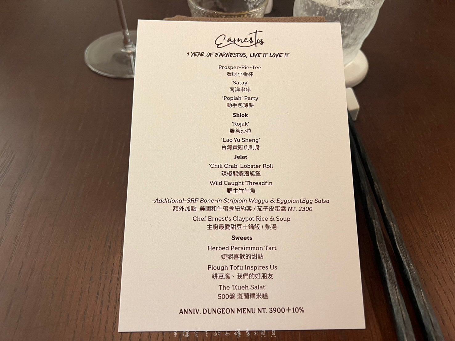 這天我們品嘗的料理是「earnestos」一週年特別料理,不變的是主廚要帶來新加坡家鄉味。